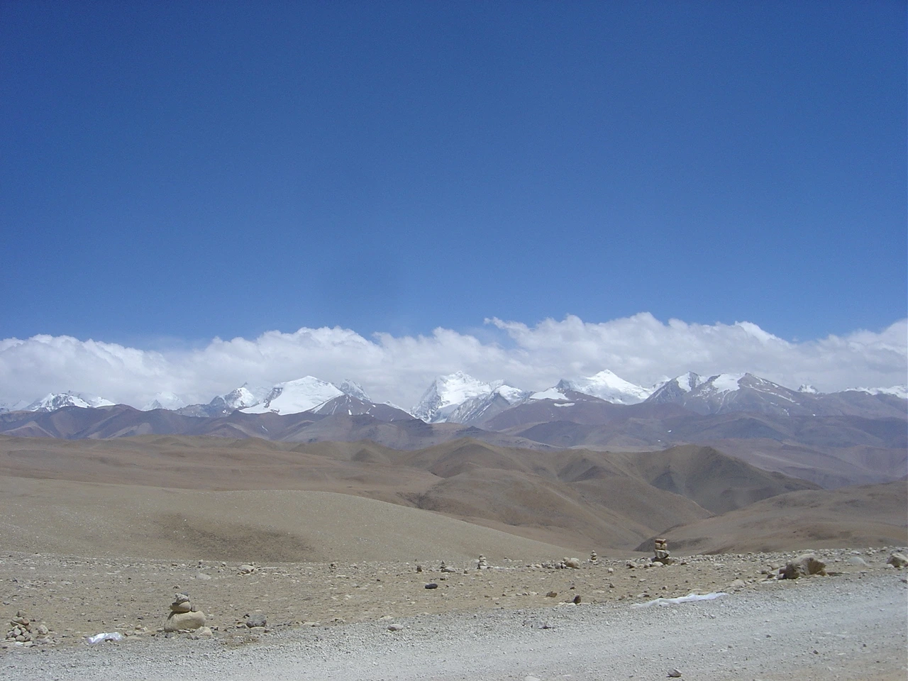 시샤팡마(Shishapangma, 8,027m)는 티베트어로 '풀밭 위의 산' 혹은 '일기변화가 극심한 곳'이라 불리는 산으로, 8,000m급 거봉 14좌 중 막내라는 수식어가 무색할 만큼 압도적인 고독을 두르고 있었다. 지프차 문을 열고 내려선 길 위에는 작은 돌탑들이 듬성듬성 놓여 있었다. 누군가 이곳을 지나며 하나씩 얹어두고 간 돌들, 저 설산을 향해 던진 무언의 기도들이었다. 아내와 나는 그들 곁에 서서 말없이 시선을 멀리 두었다. 눈앞에 펼쳐진 풍경은 세상의 끝 같으면서도, 동시에 모든 길이 다시 시작되는 자리처럼 느껴졌다.