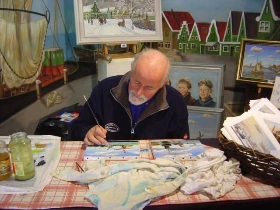 나막신 공장 옆에는 기념품 가게가 있었다. 기념품 가게 입구에는 하얀 턱수염을 기른 한 노인이 풍차를 정성스럽게 그리고 있었다. 그림을 그리는 모습이 어찌나 진지하고 정성스럽던지 구경을 하는 사람도 저절로 삼매경에 빠질 지경이었다. 노인은 평생을 이곳에 살며 풍차만을 그리고 있다고 했다. 그 진지한 표정을 카메라에 담고 싶다고 했더니 기꺼이 포즈를 취해주었다. 할아버지가 그린 그림을 사고는 싶었으나 값이 만만치가 않았다. 사진만 찍고 그림을 사지 못해 미안하다고 했더니 전혀 괜찮다고 하며 씩 웃었다.