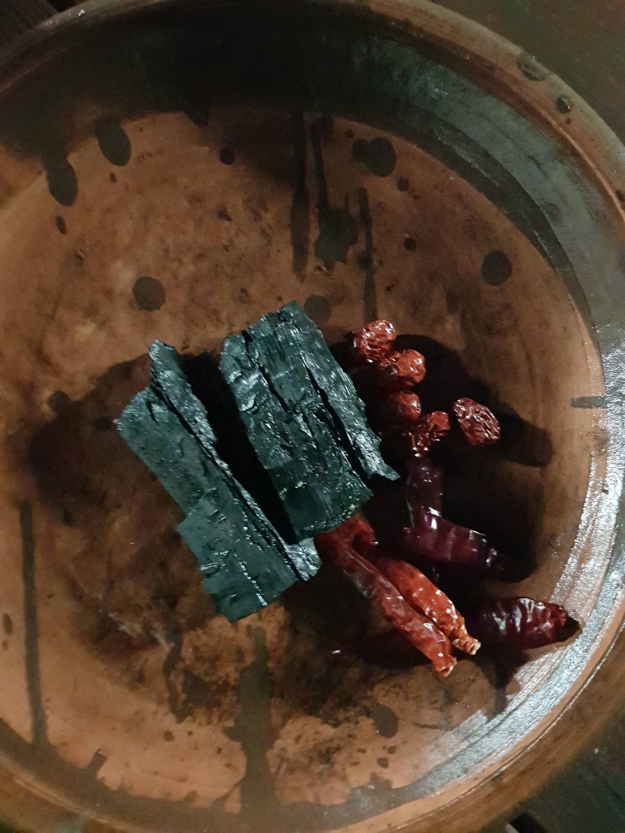 금가락지는 항아리 천국이다. 아우가 수집한 항아리가 100개나 된다. 그중에서 때깔이 가장 좋은 항아리를 말끔하게 씻어서 매주를 담고, 소금물을 서서히 부었다. 소금물이 목에 차도록 붓고, 현이 할메의 지시대로 고추 다섯 개, 대추 다섯 개, 숯덩이 두 개를 넣고 뚜껑을 꽉 덮었다. 말날 장 담그기 완성을 하고 나니 컴컴해졌다.