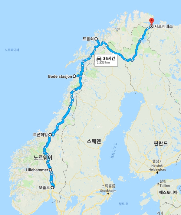 기차는 그런 내 마음을 아는지 모르는지, 어둠 속을 뚫고 계속 북으로 북으로 달려만 가고 있었다. 오늘 밤은 아주 긴 기차 여정이다. 오슬로에서 보되(BodΦ)까지 18시간 정도 걸리는 장거리 기차 여행이다. 중간에 트론헤임 역에서 보되로 가는 기차를 갈아타야한다. 노르웨이는 남북의 직선거리가 북극의 겨울만큼 길다. 국토의 삼분의 일이 북극권에 들어있는 노르웨이는 여름은 해가 지지 않는 백야가 지속되고, 가을을 눈 깜짝할 사이에 지나간다. 그리고 긴긴 북극의 겨울이 시작된다. 지금은 겨울로 가는 문턱인 10월이다.