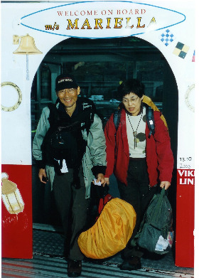 선실로 들어가는 대합실에서 길 다란 통로를 통해 갑판으로 올라가는 데, 입구에서 누군가가 플래시를 터트리며 사진을 찍었다. 갑자기 어리벙벙해졌다. 무거운 배낭을 걸머지고 들어가는 배낭 여행자를 환영해주기라도 하는 것일까? 나는 이 사진을 찾는데 나는 5유로의 거금을 소비했다. 순간의 멋진 장면 하나를 놓치고 싶지 않았기에 아내의 반대를 무릅쓰고 사진을 찾았다.