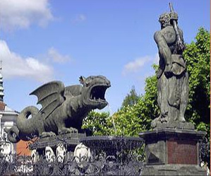 그 전설을 말해주는 석조로 만든 괴물 드래건이 신 광장 한가운데 서 있었다. 그 맞은편에는 도시의 수호성인 ‘성 게오르그’가 방망이 하나를 들고 용을 내려칠 듯이 서 있었다. 그 용을 사이에 두고 시청 건물과 마리아 테레지아 여왕의 동상이 서 있었다.