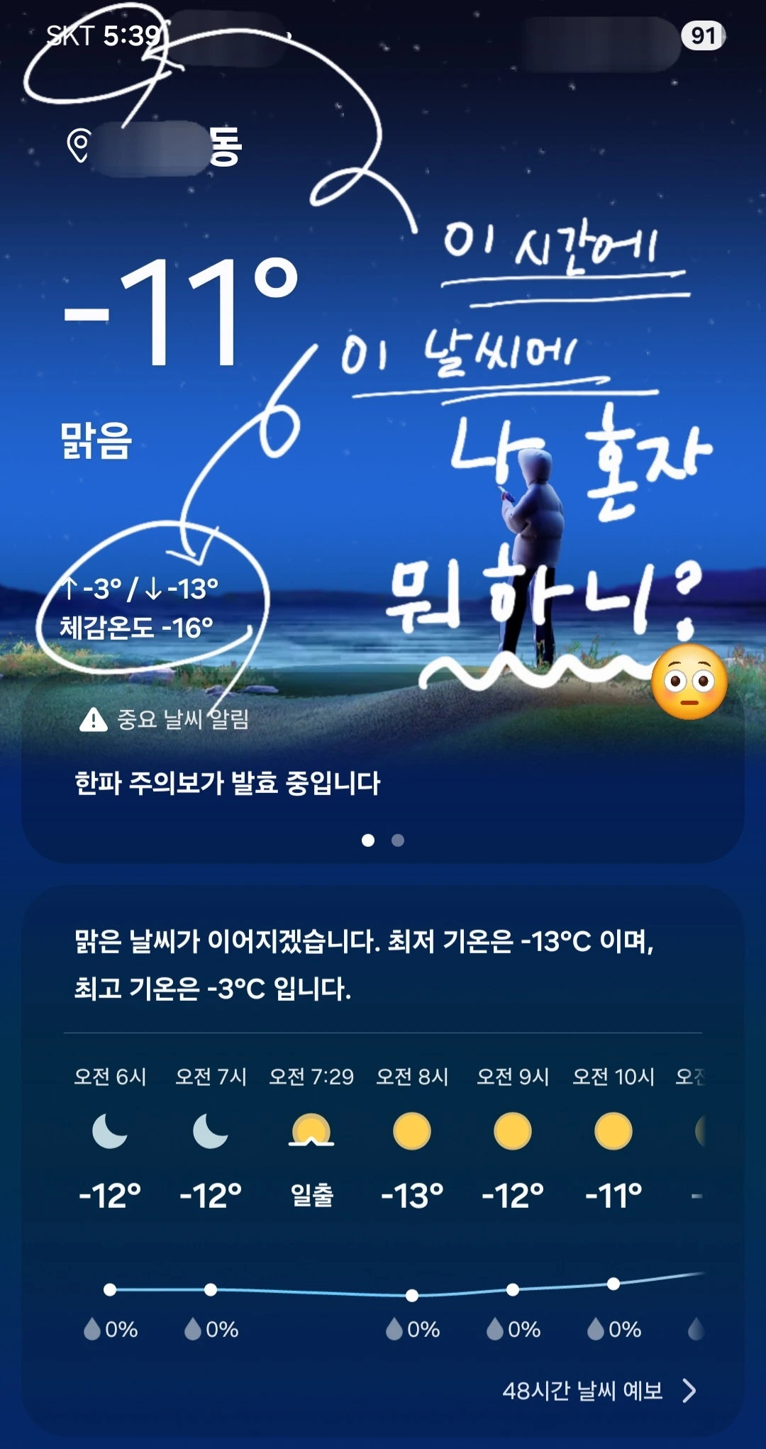 추위에 움츠러든 몸도 풀릴 기미가 없고..