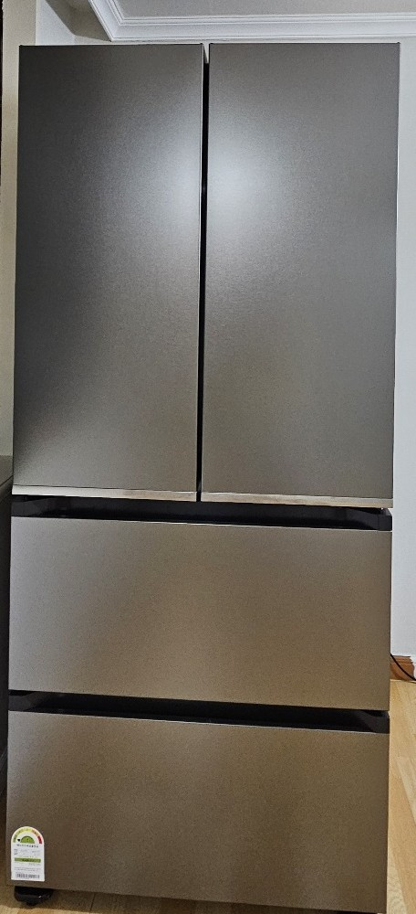 드디어 스탠드형이 우리 가족이 되었다. 내 생각보다 조금 어두운 색이다. 냉장고와 같은 메탈, 4도어에 스탠드형이다. 또 하나의 냉장고가 생겼다. 오늘 부자된 느낌이다. 집에 오자마자 새 가족 스탠드형을 만나 인사하고 언니에게 사진을 찍어 보냈다. 이 선물은 언니가 이사 선물로 보내 준 것이다. 위, 아래, 오른쪽, 왼쪽 사진 찍어서 보냈더니 웃음을 답장으로 보내왔다.