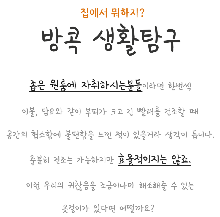 필자는 최근 한 인터넷 쇼핑몰에서 차별성을 바탕으로 제품의 경쟁력을 피력한 상품을 보고, 마음을 빼앗겨 지갑을 연 경험이 있습니다. 제가 해당 상품을 구매한 결정적인 이유는 "큰 공간을 차지하는 기존 빨래 건조대의 불편함을 해소할 수 있는 새로운 건조대"라는 텍스트 때문이었습니다. 즉 필자는 본래 기존 빨래건조대에 불편함을 가지고 있었기에, 이러한 불편함을 해소할 수 있는 차별화 된 새로운 아이템에 끌린 것입니다.