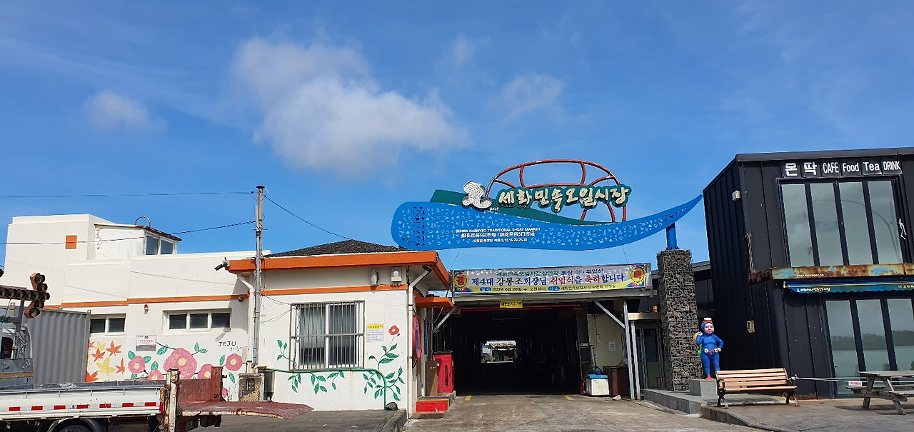 나에게 제주가 즐거운 이유 중 하나는 지역마다 5일장이 선다는 것이다. 여행을 하다 예상치 못한 오일장을 만나면 옛 친구를 만난 듯 반갑고 순대국밥이라도 한 그릇 해야만 할 것 같다. 오늘은 세화오일장을 품은 코스다. 아쉽게도 장은 서지 않았지만 으늑하게 비어있는 공간이 누군가를 기다리고 있는 것만 같아 거기 시장이 없는 것처럼 그저 지나가기가 쉽지 않다.