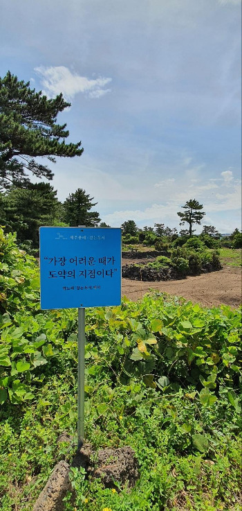 평대리와 한동리를 잇는 숲길에 서있는 좋은 글귀들을 지난다.