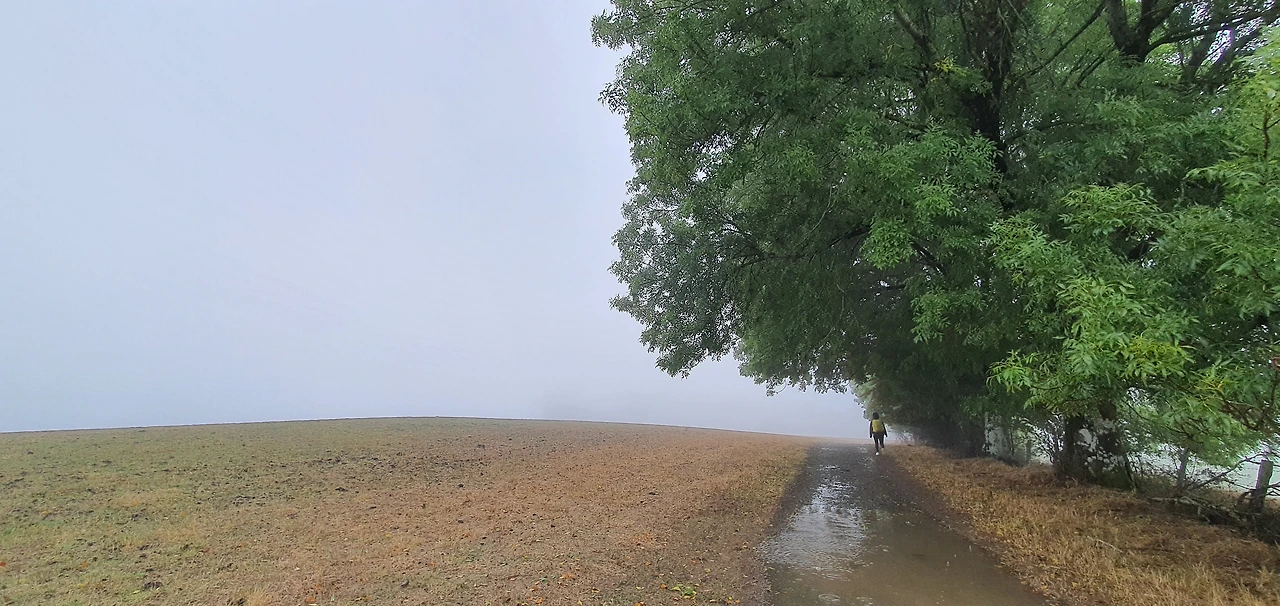 아침 7시 여전히 캄캄했다. 어제의 비는 그치지 않고 어둠을 더욱 짙게 하고 더디 걷히게 했다. 호기롭게 둘이서 길을 나서다 어두운 길을 뚫지 못하고 주춤 뒷걸음치다가 폰 전등에 의지해 걷고 있는 사람과 합류한다. 그의 폰과 우리 폰의 빛이 합쳐지니 어둠을 뚫는데 수월해졌다.
