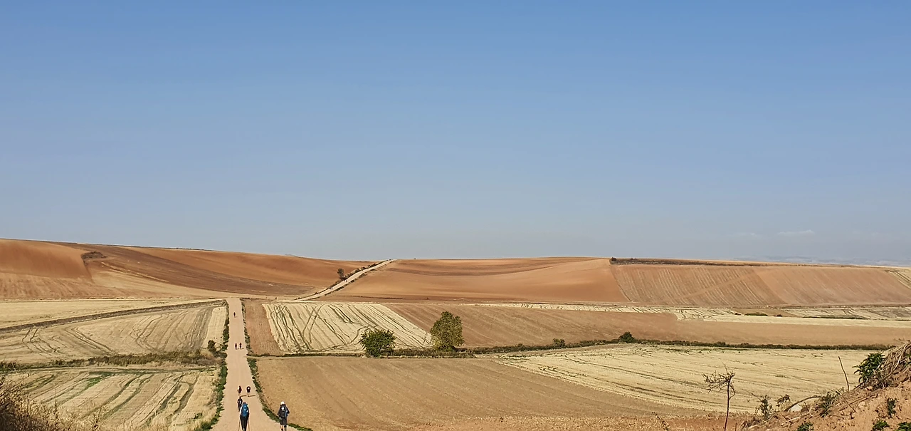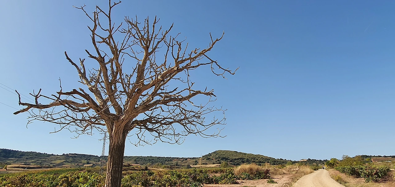 우리가 떠나온 나헤라, 등 뒤에서 여지없이 해가 떠오른다. 단조롭고도 지루한 길이 걷는 내내 계속된다. 그나마 한 그루 서 있는 나무의 그늘은 앞서 걷는 자들이 모두 써버리고 손바닥만큼도 남아 있지 않다.