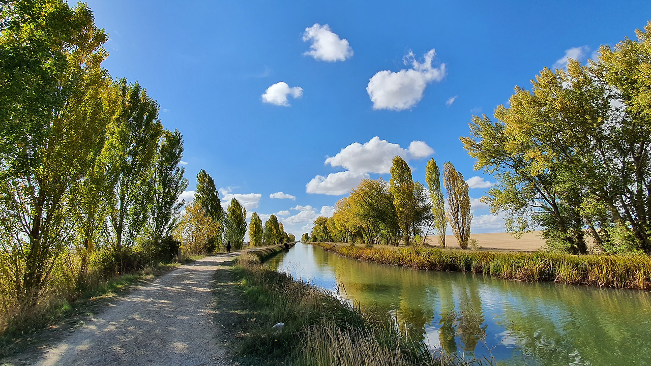 다리 하나를 사이에 두고 드디어 발렌시아 지역으로 넘어간다. 그리고 시작되는 뜻밖의 자작나무들, 가을은 자작나무 숲에서 시작되고 나는 갓 시작된 가을을 걷기 시작했다. 이테로 데 라 베가 마을을 지나고 보아디아 델 카미노 마을을 지나 목적지가 6킬로미터 정도 남은 지점, 언덕 위로 계단 몇 개를 올라서니 상상하지 못했던 운하가 시작되었다. 운하 양 옆으로는 미루나무,갈대들이 즐비하고 그 너머로 끝없는 고원의 평야가 펼쳐지고 있다. 이 운하의 담수가 저 넓은 평야를 적실 것이라 생각하니 내 마음도 촉촉해진다.