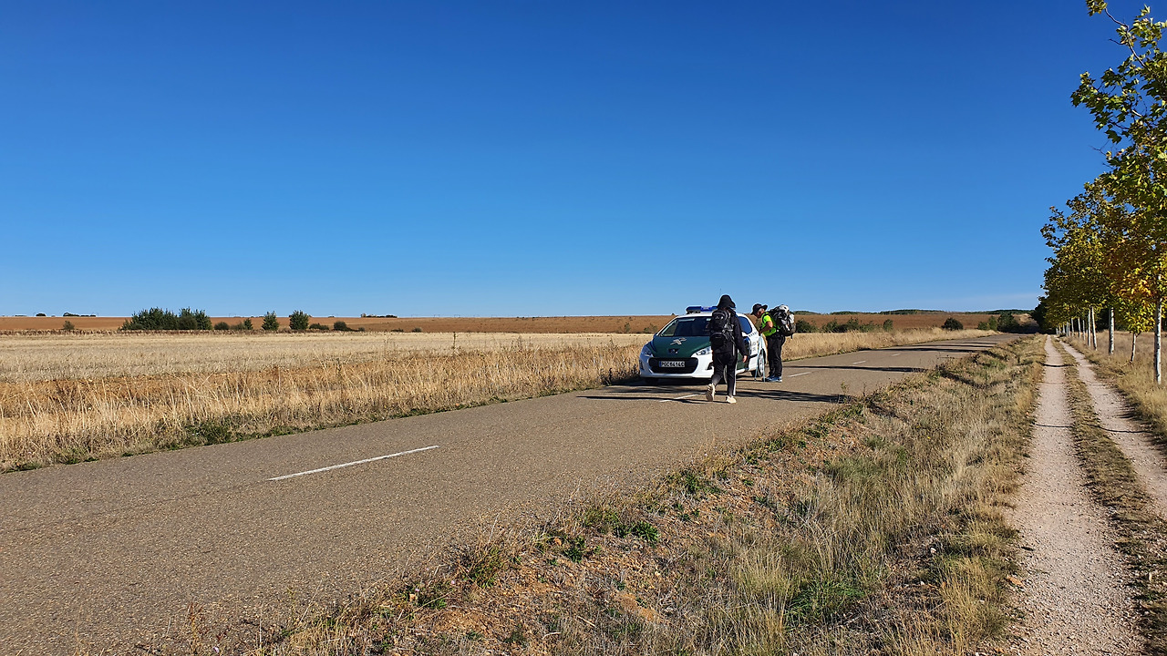 어느 정도 숲에 가까워졌을까. 밴 트럭 한 대가 왼쪽 들판으로 진입해 서더니 운전기사가 숲으로 걸어가는 것이 보였다. 왜 차를 저기에 세우고 숲으로 가지? 의구심이 들었지만 다른 길이 없어 좀더 천천히 걸었다. 두려운 마음도 무서운 마음도 아무도 없는 허허벌판에서는 어찌할 방법이 없었다. 숲에 가까이 닿을 무렵 갑자기 딸아이가 ‘엄마 보지마 저OO 완전 벗고 있어’. 뛰다시피 숲을 지나서 알고 있는 모든 욕을 섞어 소리를 지르기 시작했다. 트럭운전사는 어느새 옷을 입고 트럭으로 되돌아가고 있었다. 때마침 쉬고 있는 순례자에게 상황을 설명했다. 다행히 스페인 사람이어서 경찰에 신고를 해 주었고 딸아이와 한참 통화하더니 5분도 안 돼 경찰이 도착했다. 정황설명을 다시 하고 여권을 보여준 후 경찰은 돌아가고 스페인 순례자는 우리와 함께 레리에고스까지 동행해 주었다.