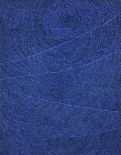 커다란 화폭에 반복되는 무수한 점들. 점들은 같은 듯 보이지만 자세히 살펴보면 다양한 차이를 가지고 있다. 명암의 차이, 모양의 차이, 채도의 차이. 자세히 관찰해야지만 알 수 있는 차이가 제각기 다른 개성을 뿜고 있는 것이다. 파형처럼 동그란 원을 그리며 반복되고 있는 점은 마치 지구와 우주를 상징하는 것 같고, 평면에 끝없이 전개되는 점과 그 사이를 가르는 흰색 선은 이것이 바다와 대지와 하늘같다. 점과 선과 면들은 어떠한 이상향을 향해 나아가는 것이 아니다. 오늘 본 꽃과 내일 본 꽃이 다르듯이, 꽃들을 가까이에서 보면 하나하나가 다르듯이, 스스로 차이와 반복 속에서 존재하는 자연 그대로인 것이다.