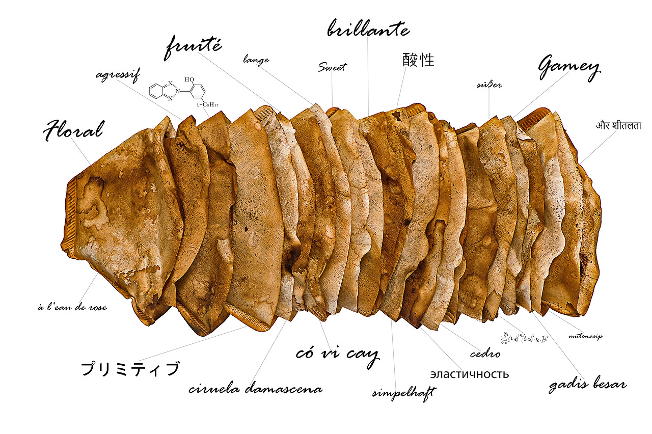 이렇게 소비되고 소멸되어지는 것들이 나에게 준 감흥을 표현할 방법에 대해 생각해보았다. 로버트 파커의 <The Greatest Wine> 이란 책의 “Wine expression”에 나타나 있는 와인을 표현하는 형용사들은 와인뿐만 아니라 우리의 삶을 표현하는 데에도 손색이 없다. 예를 들어 보자. 어느 날 아침에 새로 산 외투와 맞춰 신었던 '거만한(arrogant)' 양말, 성공적으로 업무를 끝내고 마셨던 '위풍당당한(majestic)' 커피, 어느 비 오는 날 마셨던 '풀이 죽어있는(flabby)' 와인, 오랜 기다림 끝에 승인을 득한 '생기발랄한(exuberant)' 결재 서류. 내가 행하는 모든 행위는 그것들을 표현해줄 적절한 언어와 분절되어 있다. 그 행위에 묻어 있던 물질들 또한 이러한 언어와 단절되어 있다. 지나치게 표준화되고 박제된 퉁명스럽기 짝이 없는 현대의 도시생활을 이렇게 다채로운 형용사로 표현할 수 있다면 감성적으로 더 풍요로운 삶을 살게 되지 않을까.