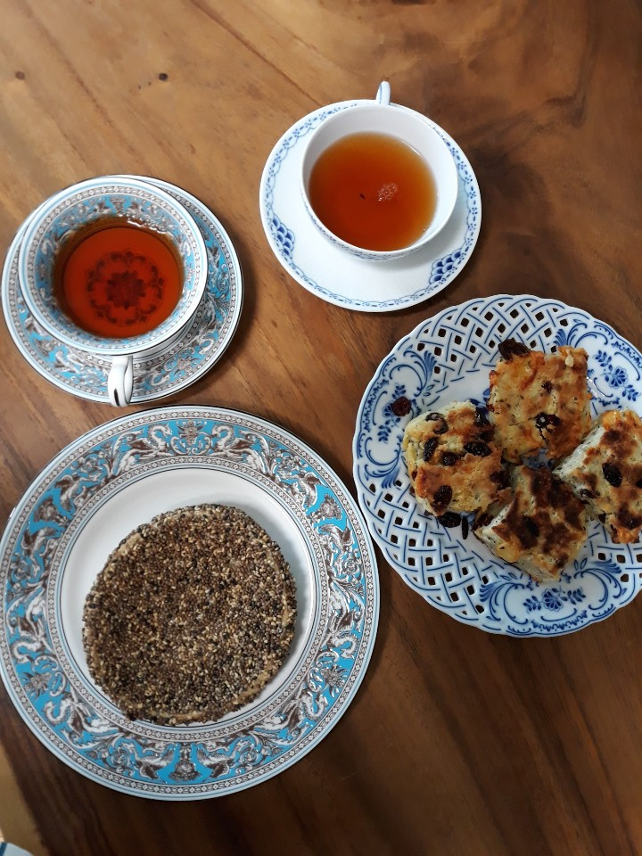 제주도의 황홀했던 스콘을 떠올리며 조선의 임금님이 강화도에 피난 갔다가 먹었다는 도루묵일까 하는 의구심으로 스콘을 굽기 시작했다. 20분 후 오븐에서 꺼낸 나의 첫 스콘은 구수한 버터향과 바질의 톡 쏘는 허브 향을 마구 뿜어내고 있었다. 그래도 고향이 영국인 빵인지라 우려낸 홍차와 함께 먹으니 궁합이 그만이었다. 겉은 바삭하고 속에는 습기가 남아 있어 마치 미디엄으로 구운 스테이크와 같은 느낌이 들기도 했다.