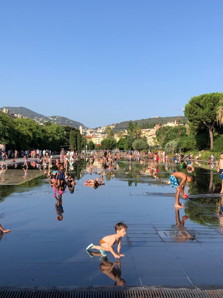 프랑스 니스에서도 혼자 다닌 날이 있는데, 니스의 마세나(Masséna) 광장은 아이들의 천국이었다. 덜 미끄러운 돌바닥 사이로 분수가 시원하게 뿜어 올라오는 곳이었기 때문이다. 돌이 막 지난 아기부터 10살 초반의 아이까지. 세상의 모든 색깔을 수영복으로 볼 수 있었지만, 더 밝은 건 무해한 아기들의 미소였다.