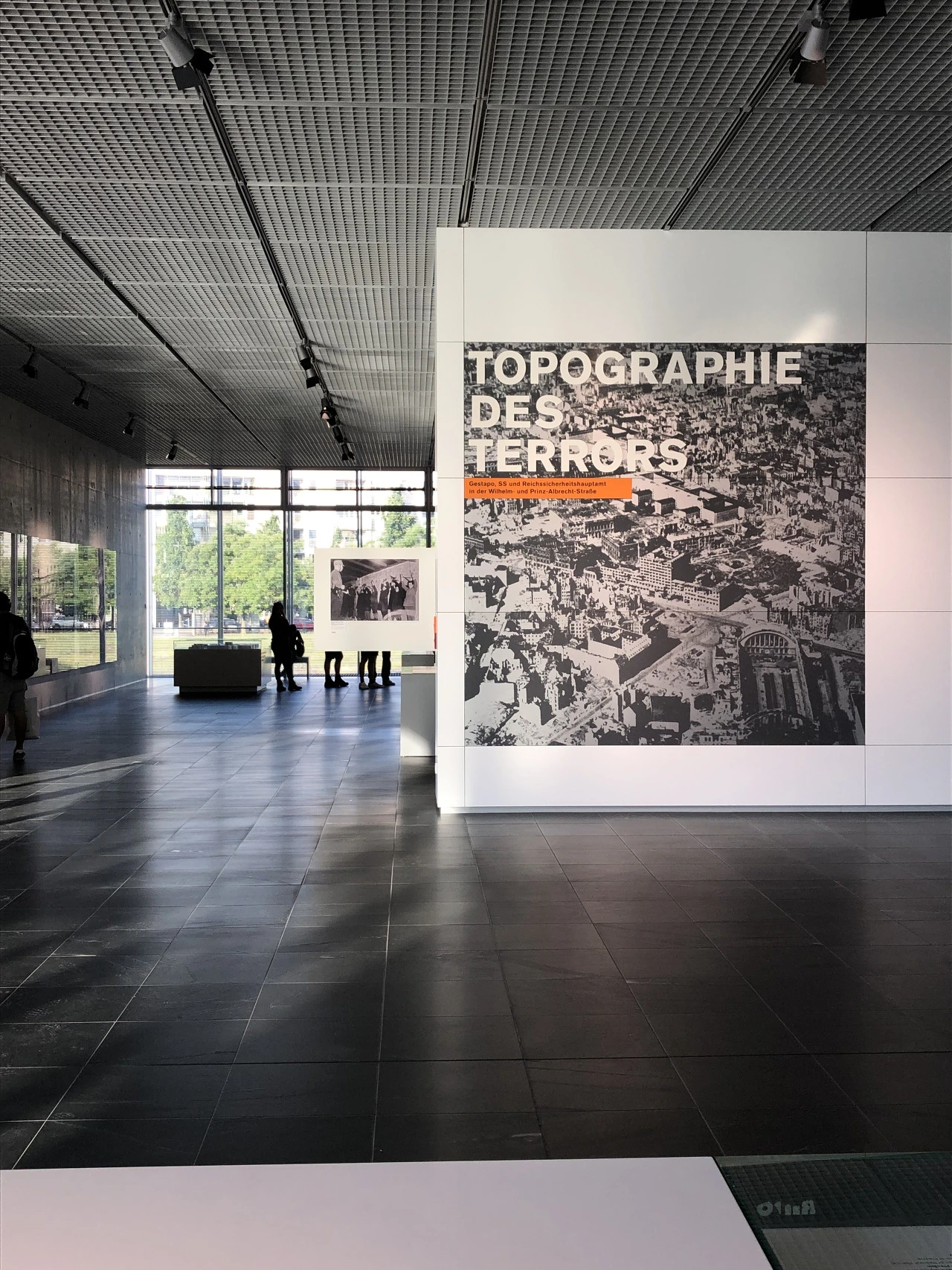 공포의 지형학. 놀랍게도 전시관 이름이다. (이름 한 번 무섭게 잘 지었네..) 이전에는 대부분의 나치 범죄가 계획되었던 곳이라고 한다. 실외와 실내로 나뉘는데, 폐장 시간이 얼마 남지 않아 실내부터 들어갔다.
