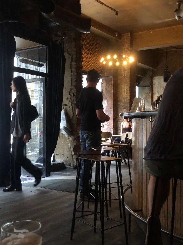 누가 봐도 직업이 모델인 무리를 따라 들어간 바. 발 내딛자마자 완전히 사랑에 빠져버렸다. 나무, 구릿빛 통풍로, 갈색 벽이 시크한 분위기를 내고 펑키한 비트 음악이 생동감을 덧대고 있었다.