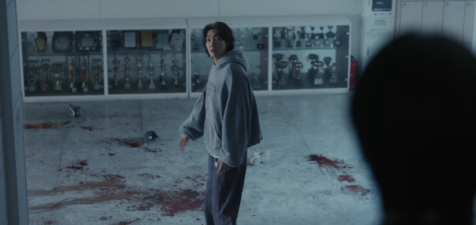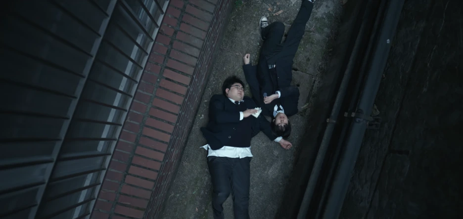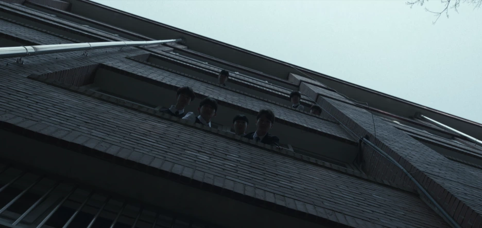 폭력을 휘두르던 무리가 떠나고, 시청자는 안도합니다. 아 이제 끝났나 보다. 그리고 다음 장면을 기다리려는데... 카메라는 쓰러져있는 학생들을 시선을 따라갑니다. 거기에는 학교 창문에서 머리를 내밀고 구경하는 학생들이 있습니다.