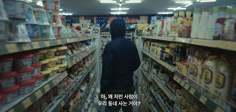 게다가 마트 손님들의 곱지 않은 시선이 더해지면서, 이 공간은 단순한 통로가 아니라 사회적 심판대가 되어버립니다. 걸음을 옮길수록 분노의 압력이 쌓여가는 공간이지요.