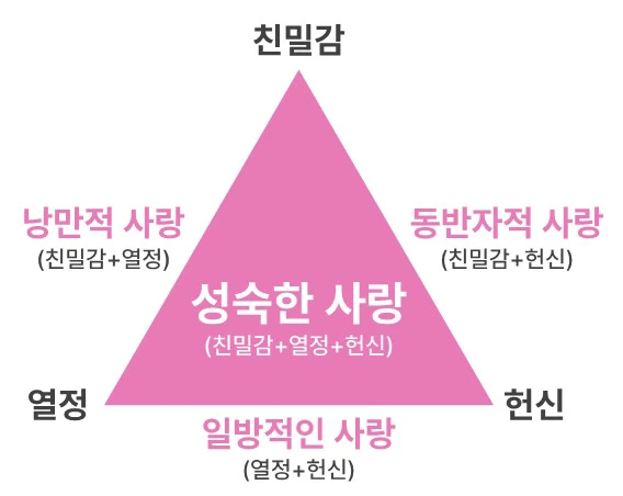 우리는 사랑에 대해 끊임없이 관심을 가진다. 사랑을 이야기할 때 흔히 남녀 관계를 떠올리지만, 사랑은 다양한 형태로 나타난다. 심리학자 로버트 스턴버그의 '사랑의 삼각형 이론'에 따르면 사랑은 친밀감, 열정, 헌신이라는 세 가지 요소로 나뉜다. 친구 간의 친밀한 사랑, 연인 간의 열정적 사랑, 부모 자식 간의 헌신적 사랑처럼 다양한 형태로 존재한다.