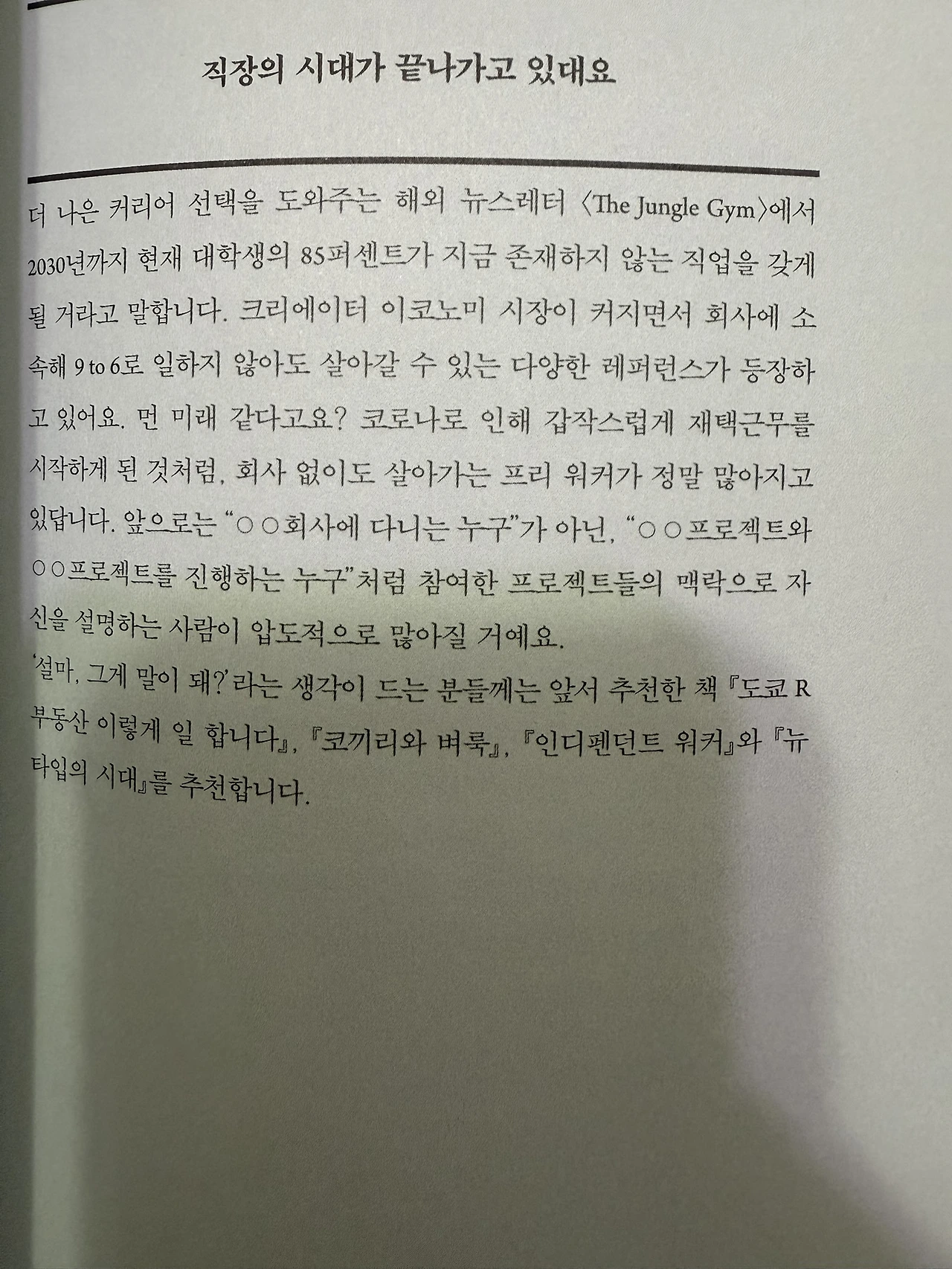 퇴사 전에 무엇을 준비해야 할지, 퇴사 후 어떤 일을 해야 할지 알고 싶어 읽게 된 책이다.