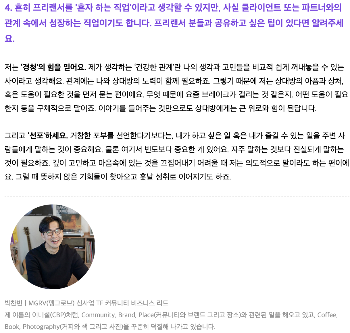 2. 크몽 디어프리매거진 9월호 "프리랜서에게도 인간관계가 필수적인 이유" 인터뷰