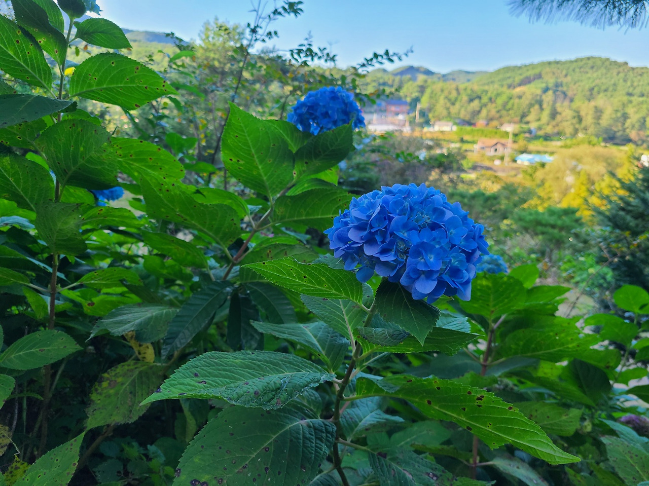 단연코 파란색 수국은 완연한 가을 날씨에 독보적인 위용을 자랑했다. 잔잔하면서도 무게감이 있는 색상은 사람들의 발길을 잠시나마 잡아 놓았다. 가을 하면 국화라고 하지만 수국의 아름다움은 그 이상인 것 같다. 수북이 핀 꽃을 바라보며 어지러운 마음을 다시 잡아 본다.