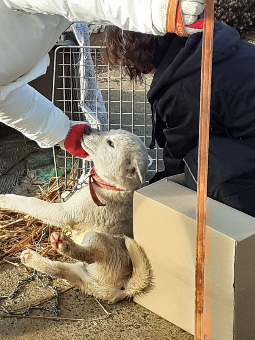 "그렁께. 나도 좋은디야... 개들 상태가 젤로 걱정되는구먼. 쨍이를 쇠사슬로 묶은 것도 그렇고, 처마 아래에 쨍이 집을 옮겨주시지 눈비 다 맞아서 어떡한당가."