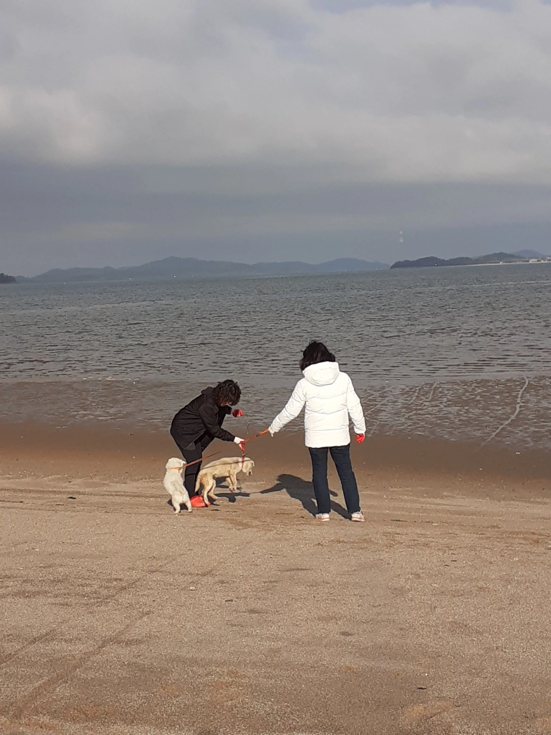 비 때문에 하지 못한 바닷가 산책을 가기로 했다. 미남이와 쨍이를 데리고.