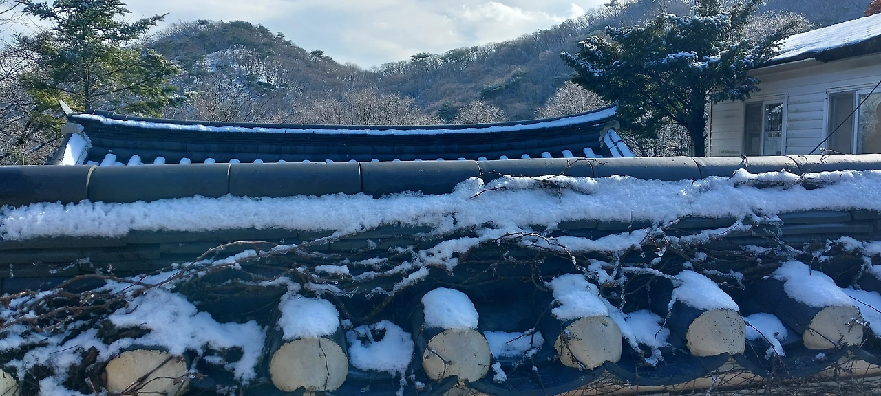 강화도 정수사. 수많은 사진 중 이 사진을 넣고 싶은 건 기와 위에 얹어진 눈의 감성 때문이다.