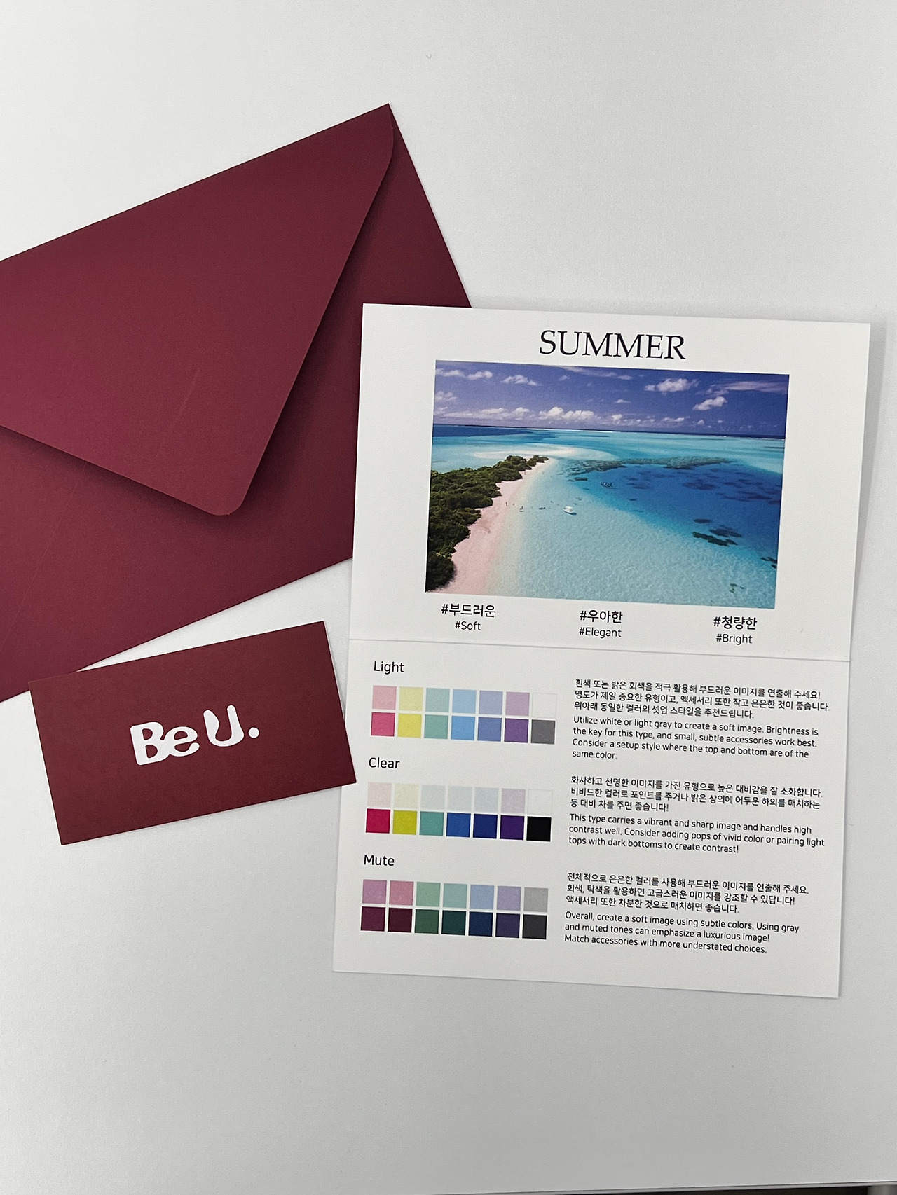 나의 퍼스널 컬러는 '여름 뮤트'라고 했다. 은은하고 차분한 느낌, 명도와 채도가 중간 정도이며, 회색 기운이 많이 섞인 파스텔 색감을 뜻한다고 한다. (더 설명할 자신이 없으니 패스^^)