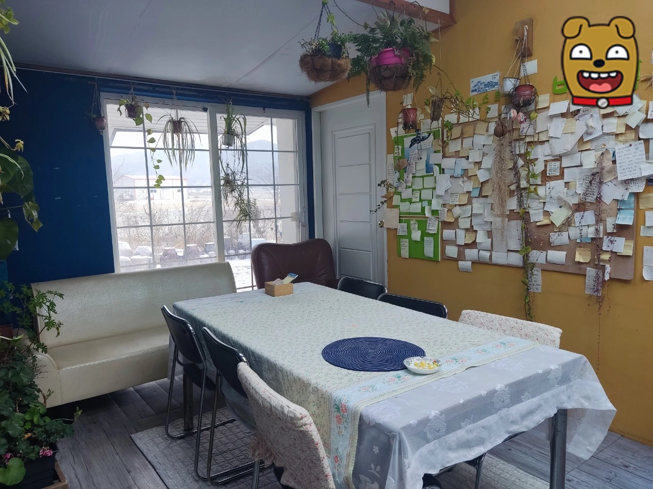 실내의 문이 열리는 순간 을씨년스러운 공기에 추위를 잘 타는 나는 잠시 주춤하였다. 감기에 걸릴까 조심스러웠다. 코로나 시국에서 막 해제된 때라서 아직은 조심스러운 시기였으나 쥔장의 환대에 미끄러지듯 실내로 들어갔다. 10인실 도미토리룸과 쥔장 가족의 본체 사이에 거실이 있었다.