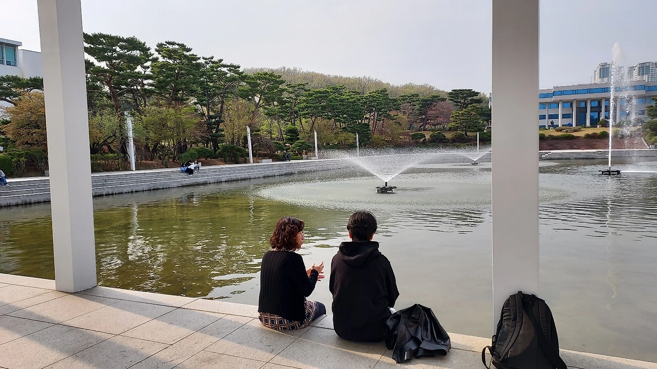 왼쪽 창창, 오른쪽 민지. 한양대 에리카 캠퍼스에서.