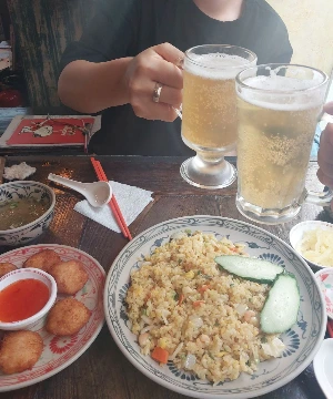 대학로에서. 채식 실천가 민지가 나를 배려해 새우튀김을 주문해 주었다.