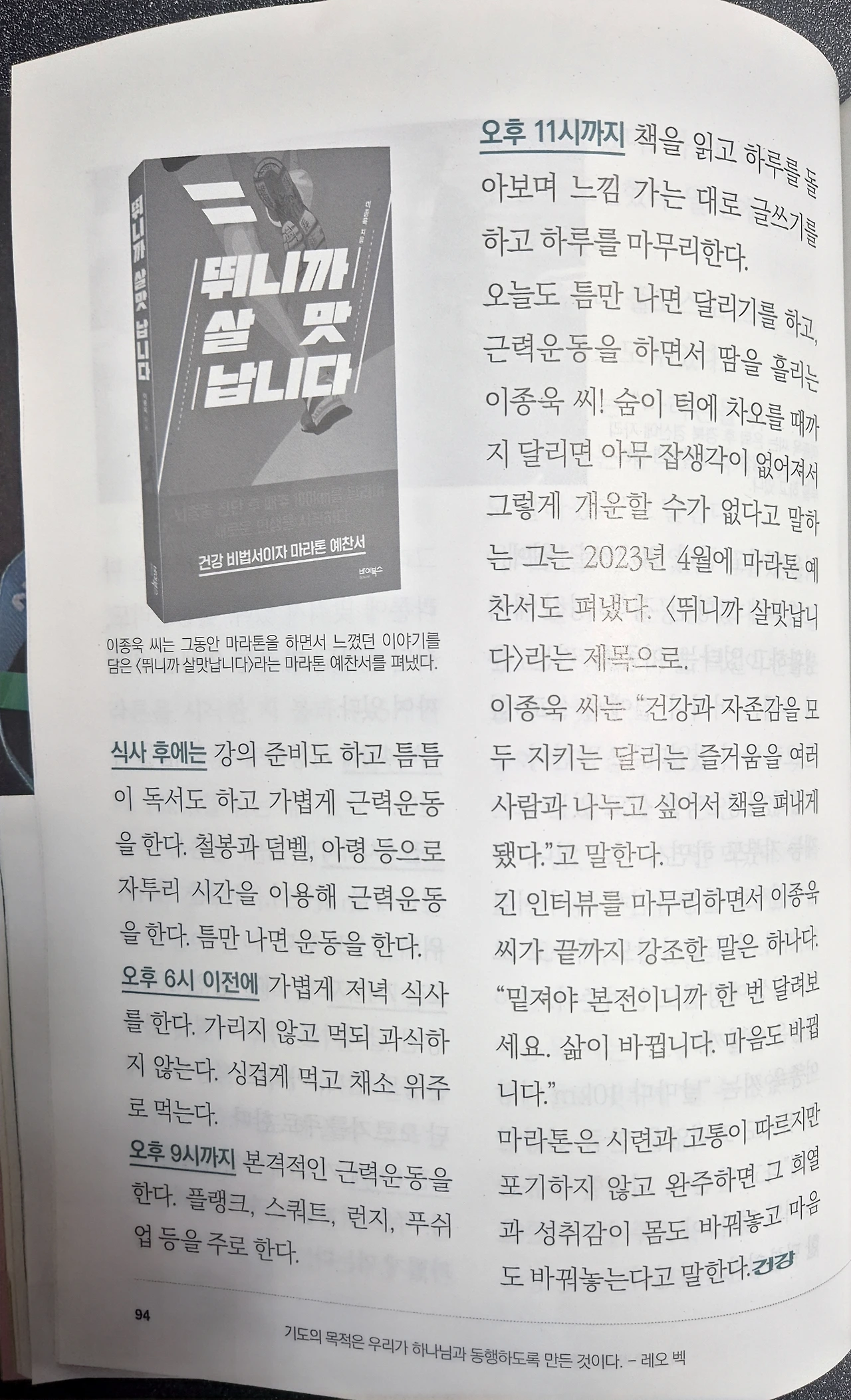 운동이 귀찮고 식습관도 쉽지 않지만, 언제 죽더라도 사랑하는 가족들에게 짐이 되지 않게, 내 발로 걷다가 죽는다는 것이 얼마나 행복하고 좋은가!