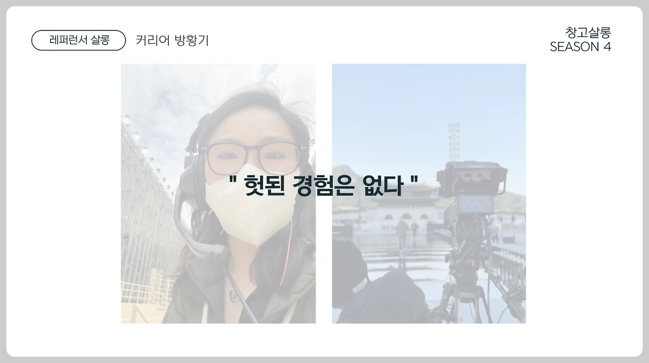 모니카님은 아르헨티나에서 유년시절을, 미국에서 대학과 첫 직장 생활을 그리고 다시 한국으로 돌아와 새로운 커리어 여정을 밟아왔어요. 시즌 3부터 3.5와 4까지 창고살롱 레퍼런서 멤버로 함께한 모니카님은 창고살롱 시즌 4 주제 [낯섦, 내가 확정되는 시간]과 찰떡같이 어울리시는 분 이기도 하신데요.