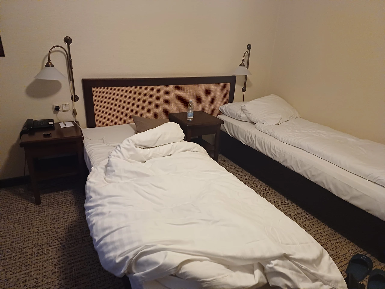 방은 침대가 상대적으로 작지만 750미리 무료물과함께 엔틱한 수도꼭지 까지 첫날을 기분좋게 시작한다.