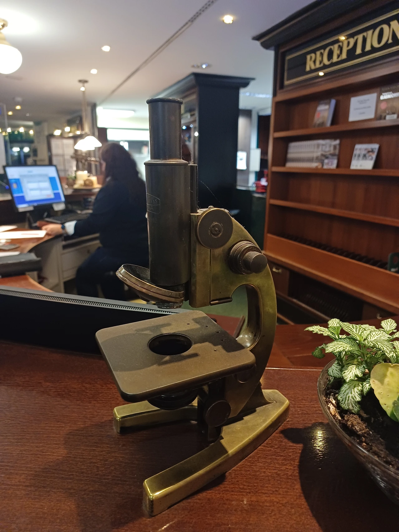 광학으로 유명하다보니 리셒션에서 망원경과 현미경이 보인다.