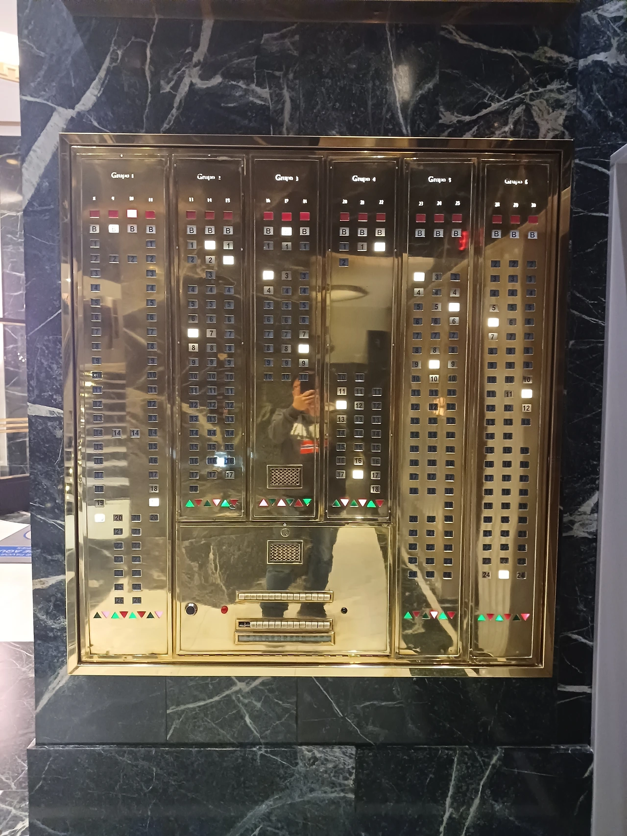 그 엘리베이터들을 컨트롤하는 기계판도 같이 보인다