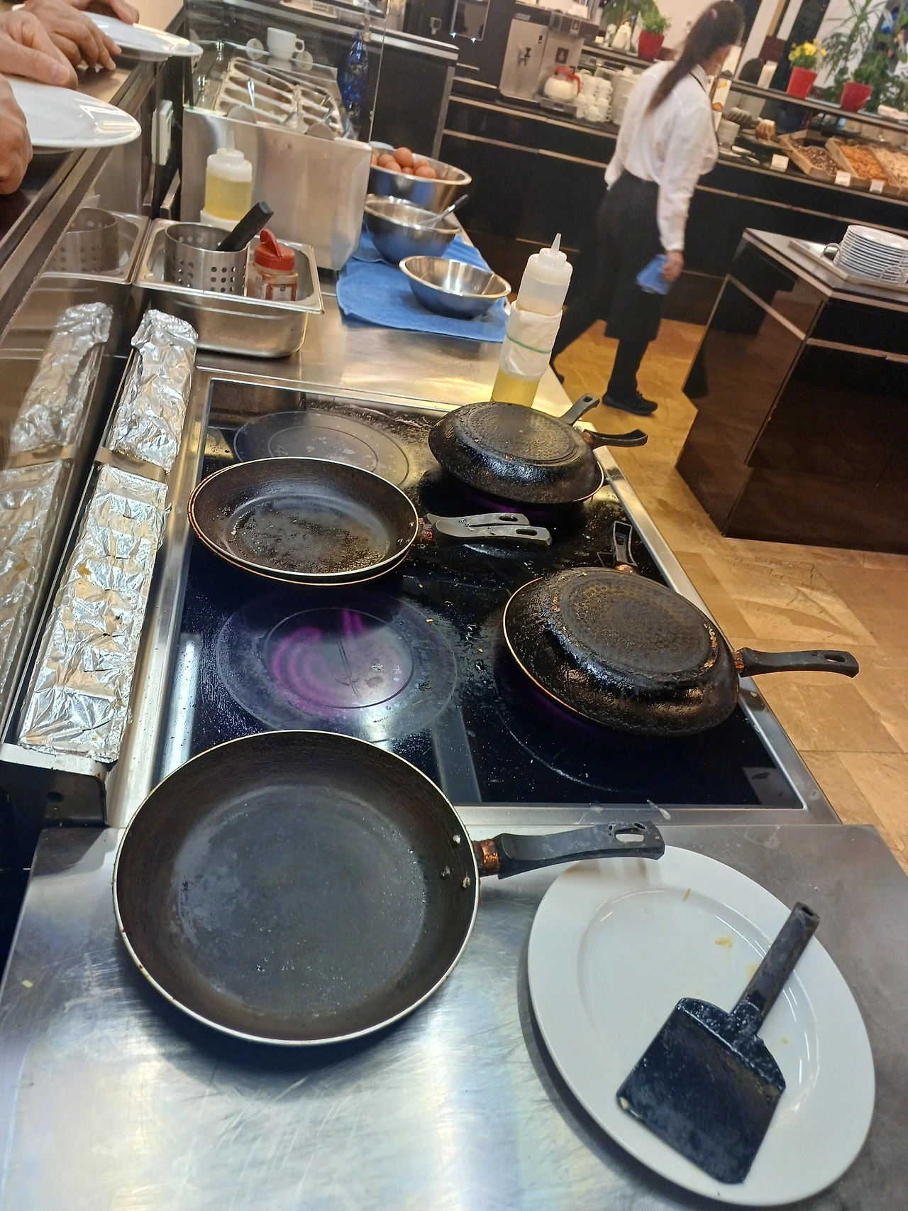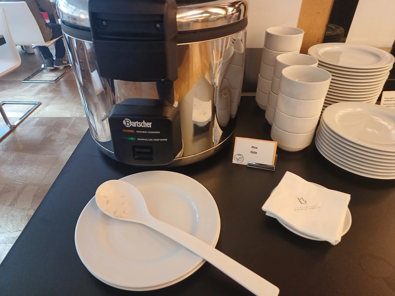 오믈렛코너와 함께 중간에 놓여진 밥솥.. 밥이 있다.ㅎㅎ