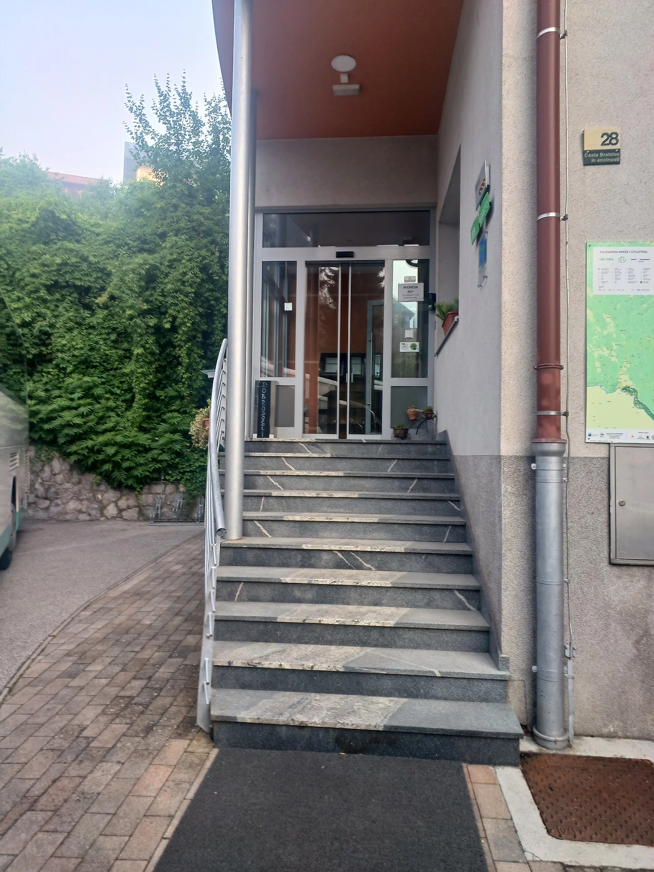 이곳으로 가면 로비로 가지 않고도 엘베가 나온다는것. 다행이도 직원이 키를 갖고 미리 버스로 와준다.