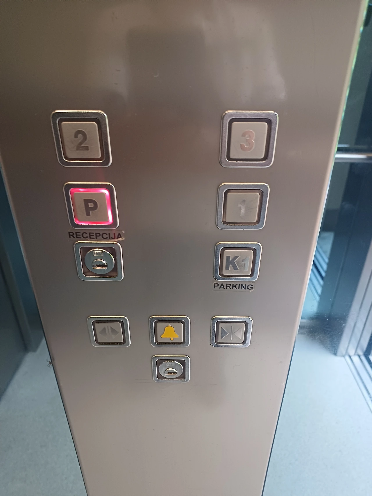 누르는 버튼이 없고 저렇게 열쇠를 꽂아서 오른쪽으로 한번 돌려야 엘베가 K1 층으로 온다는것.