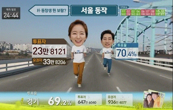 5년마다 행해지는 대선, 4년마다 치뤄지는 총선에서 3개의 지상파 방송국들은 증강현실 기술을 통해서 다양한 분석 그래프를 제공한다. 기상캐스터가 날씨정보 안내를 위해서 지도 위에서 다양한 날씨정보를 제공한다. 영화 마이너리티 리포트를 보면은 홀로그램을 통한 증강현실이 나타난다.