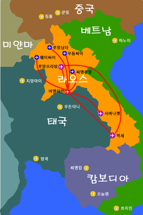 라오스로 가는 직항라인은 Lao air가 있다. 라오스 국적항공사다.