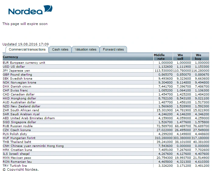 유럽은 가장 큰 은행중의 하나인 NordeaBank 환율을 조회해서 적용해 본다면,