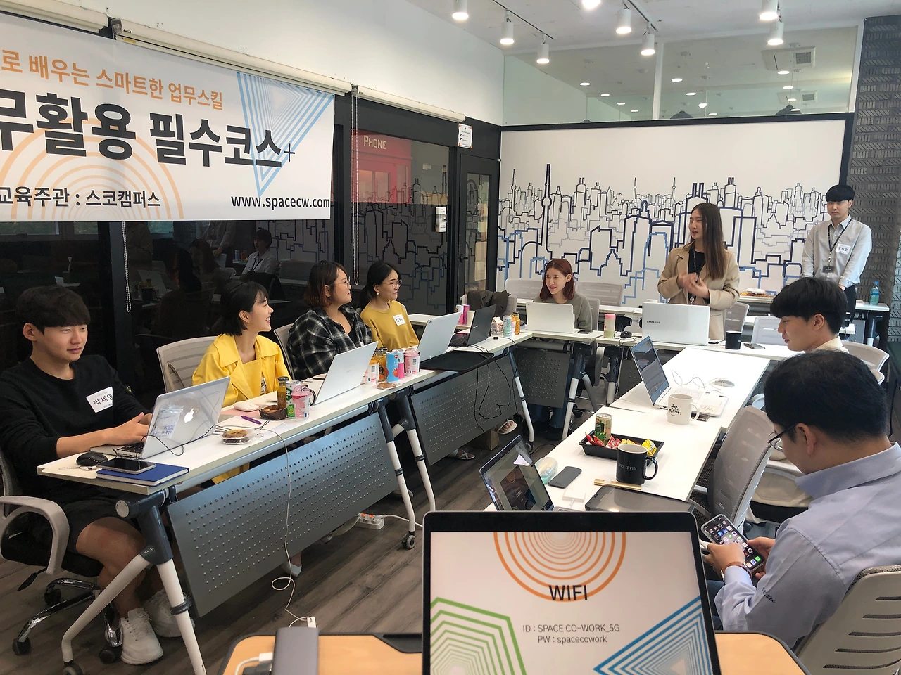 윤소현, 민성현, 봉준일, 강은초, 배종모, 오지호, 정주은, 한영균, 이수빈, 김준웅, 권선경, 정주은, 김형원, 서정욱, 윤서영, 나종하 모두 2019년을 함께한 동지들이다. 전북대, 전주대, 전남대, 충남대, 원광대 등 모두 지역 기반 대학 재학생들이었다. 경영학과, 회계세무학과, 스토리미디어융합전공, IT정보공학과, 스포츠과학과, 의류학과, 영화방송학과, 무역학과, 항공우주공학과 등 전공도 다양했다. 오히려 다양한 전공의 인턴들이 함께 해서 좋았다. 스페이스코웍은 코워킹스페이스다. 대학생들이 진로를 탐색하고 취업이나 창업 준비를 하기 위한 준비를 하기 좋은 환경이라 생각한다.