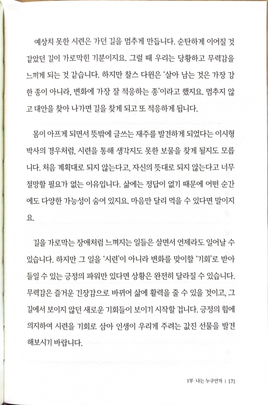 나는 시련(변수)을 기회로 바꿀 긍정의 관점과 힘(용기)을 가지고 있나요?