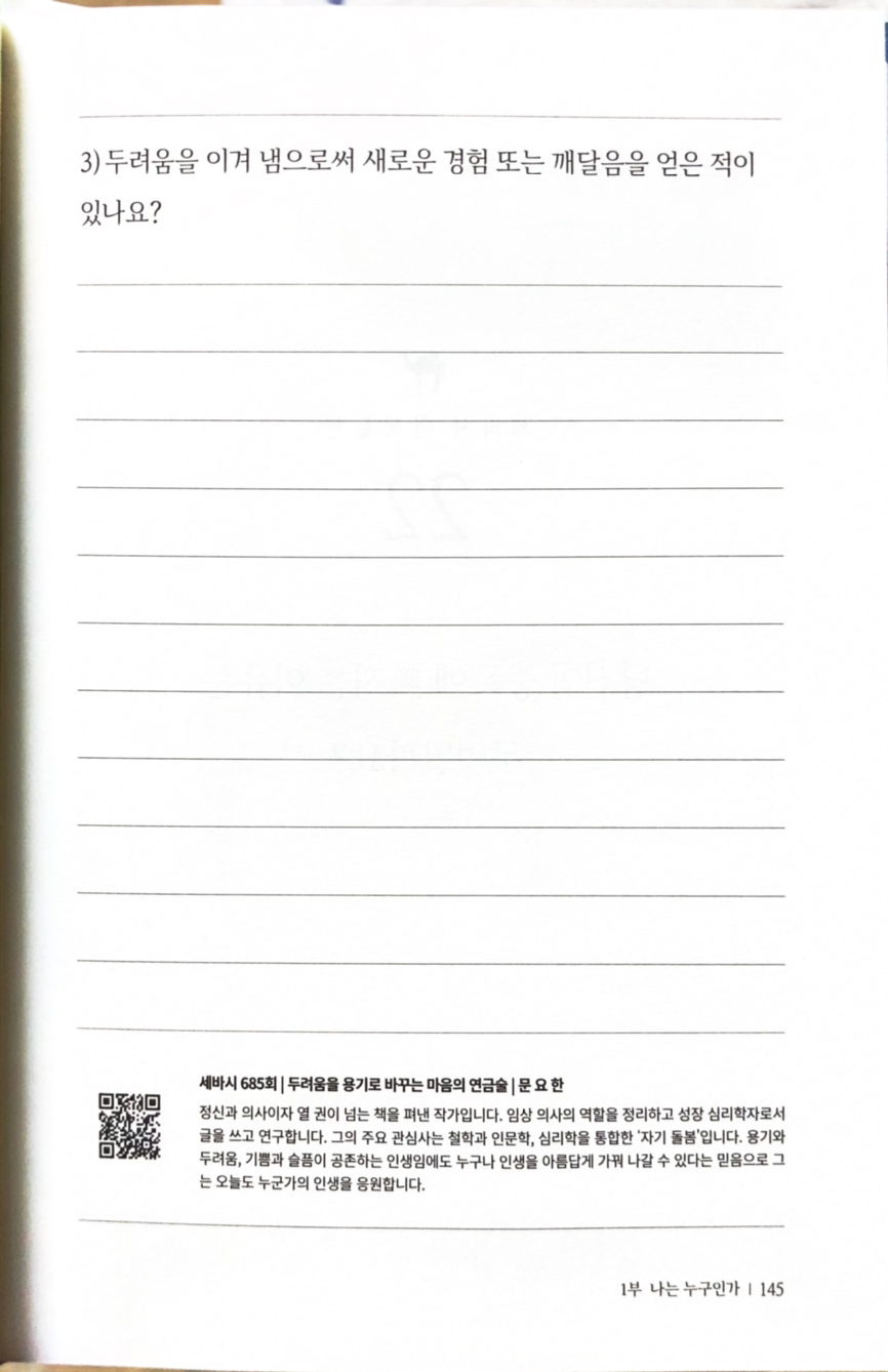 책에서 말한 두려움과, 방금 제가 말한 두려움은 조금 다르다고 생각해요.