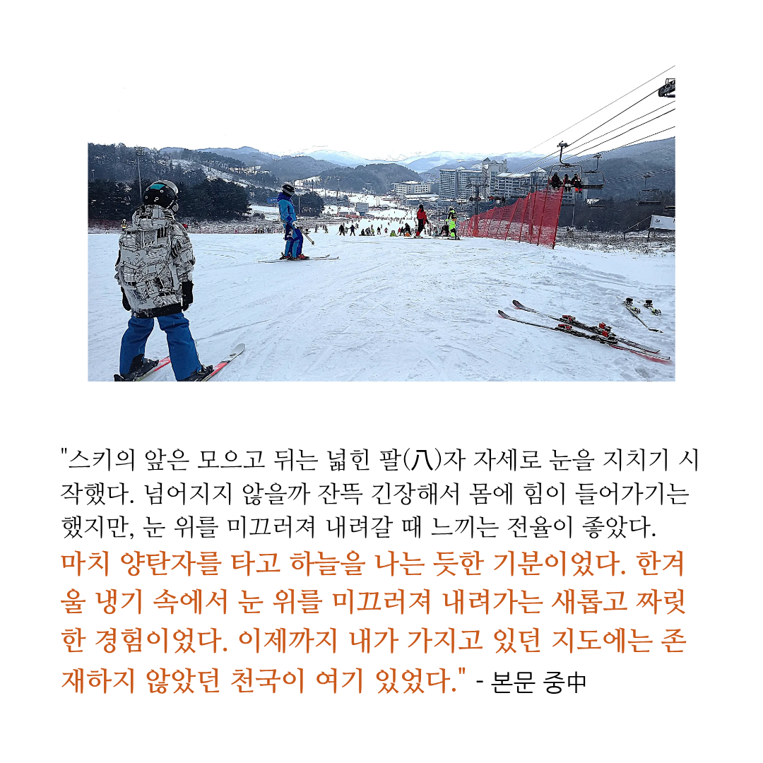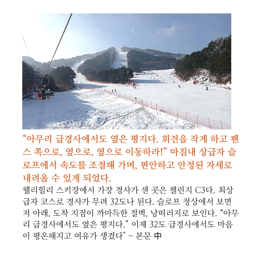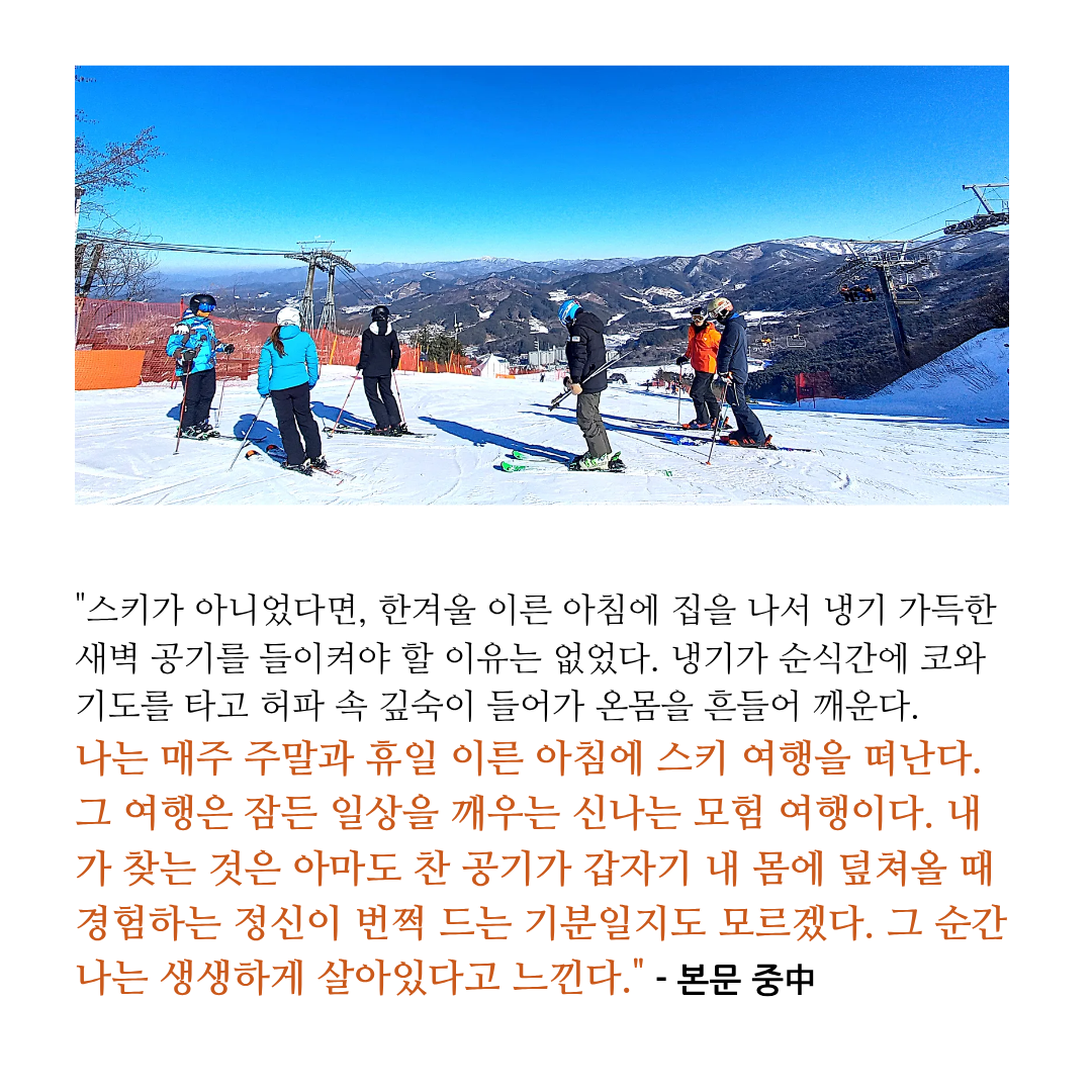#스키 #스키장 #웰리힐리 스키리조트 #용평리조트 #하이원리조트 #지산스키장 #휘닉스파크 스키장 #스키에세이 #스키책 #스키수필