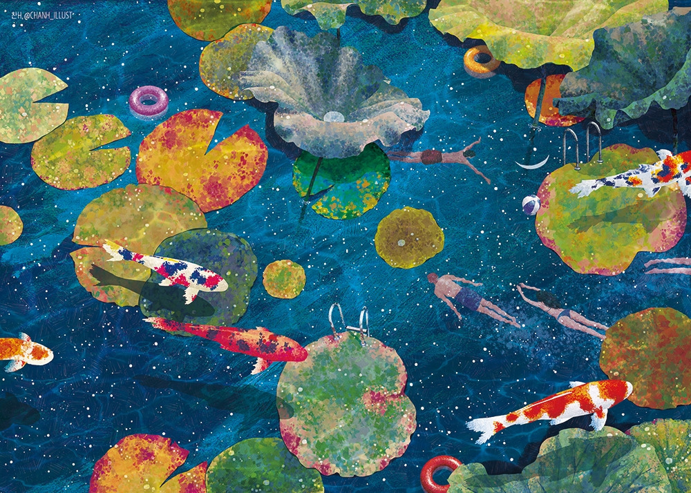 붉고 흰 잉어들이 유유히 지나가곤 했다.